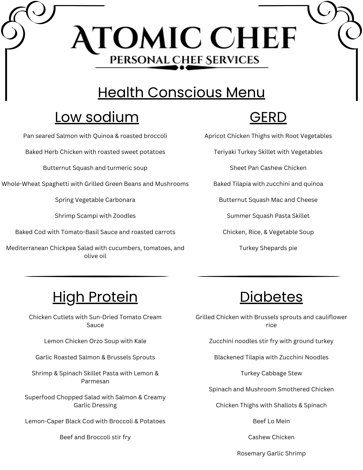 Something sound good? Let me know! Not feeling any of these options but have an idea for something else? Great! I’m always looking for new things to try. The point is as a personal chef I work with YOU to PERSONALLY cook what you want.